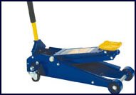 This service jack has a one piece handle and flanged side plates to increase strength. The wide frame provides more stability under a load. The cast iron pump base adds strength and durability. The pressure relief valve prevents overloading. The in-line pump assembly assures long life and no off-center forces for ease in pumping, aligning and reduce wear. The cast iron lift arm allows for heave duty loads. U-joint release mechanism for precise load control.
